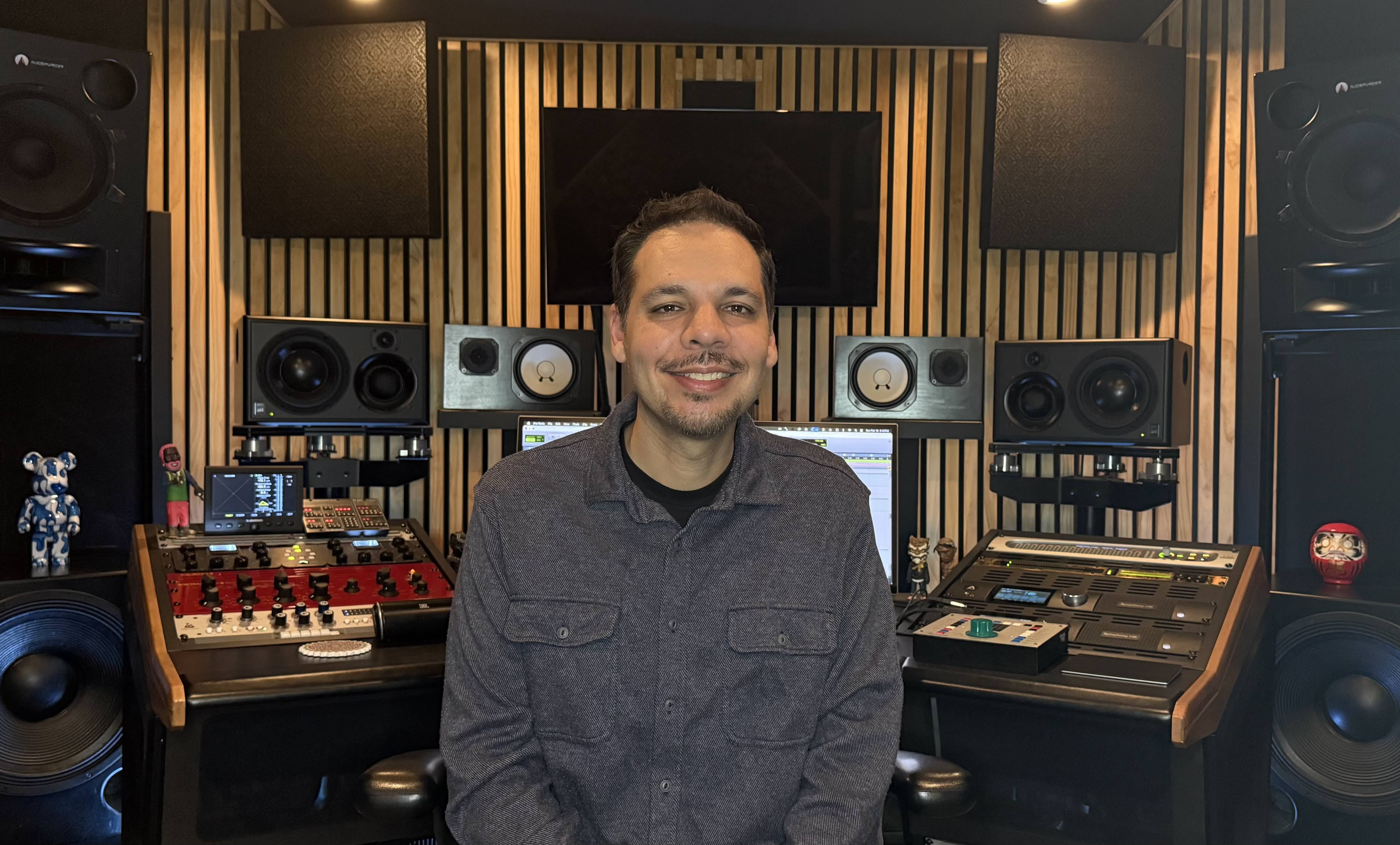 Erik Madrid is pictured front of a monitor and mixing equipment. The UCLA alumnus and lecturer was recently nominated for two Grammys for his work on Ledisi’s 2025 album “The Crown.” (Courtesy of Erik Madrid)