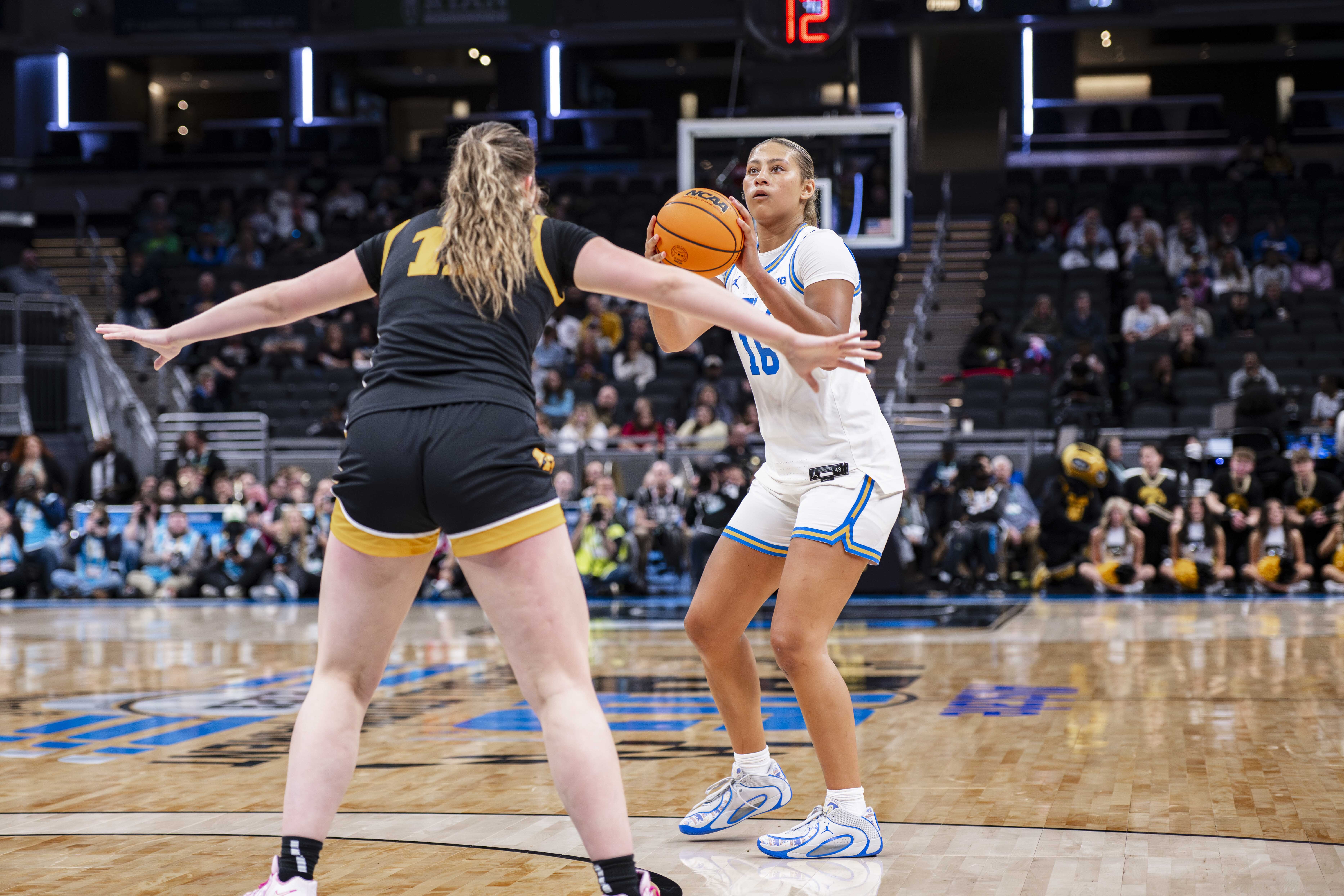 Coupled with an increased edge of the glass – manifested in the 22 second-half rebounds they reined in compared to the Hawkeyes’ 13 – and double-digit scoring from all five starters and Sienna Betts, the Bruins were vaulted to the 51-point victory – a deficit that eclipsed the Hawkeyes’ total points.