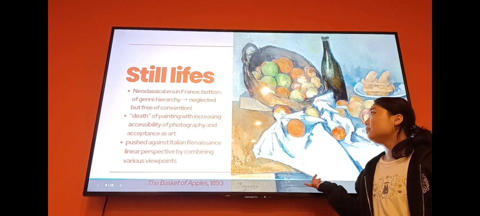 An Art History Undergraduate Student Association meeting featuring a presentation slide on “Still lifes” is pictured. AHUSA is a student-led organization focused on the exploration and discussion of art history through friendly seminars, said Nikki St. Charles, the club’s president. (Courtesy of Nikki St. Charles)