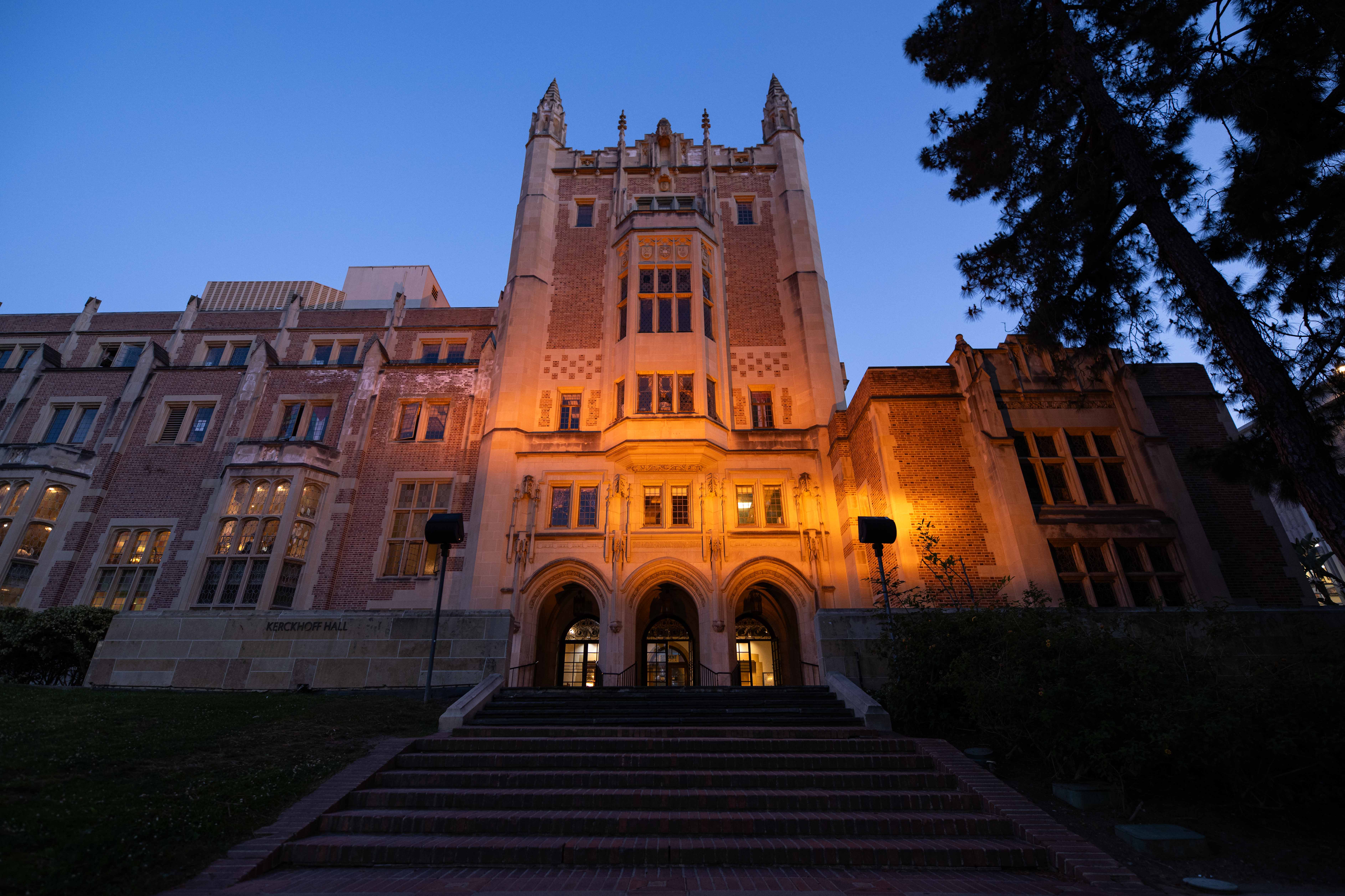 Kerckhoff Hall, which houses the offices of the Undergraduate Students Association Council, is pictured at twilight. Thirty-eight candidates will run for council in 2026. (Daily Bruin file photo)