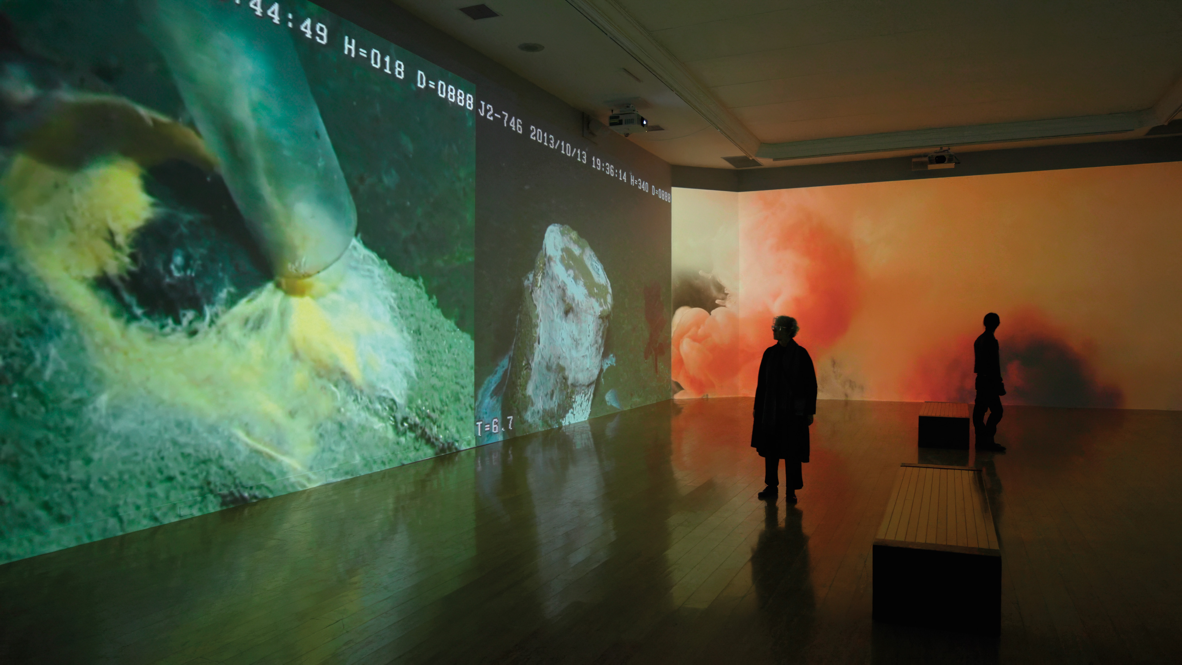 Picture of the art video installation “The Sea Around Us.” Created by Rebeca Méndez, aprofessor in the Department of Design Media Arts, the exhibit was inspired by Rachel Carson’s 1951 book of the same name.(Courtesy of Rebeca Méndez)