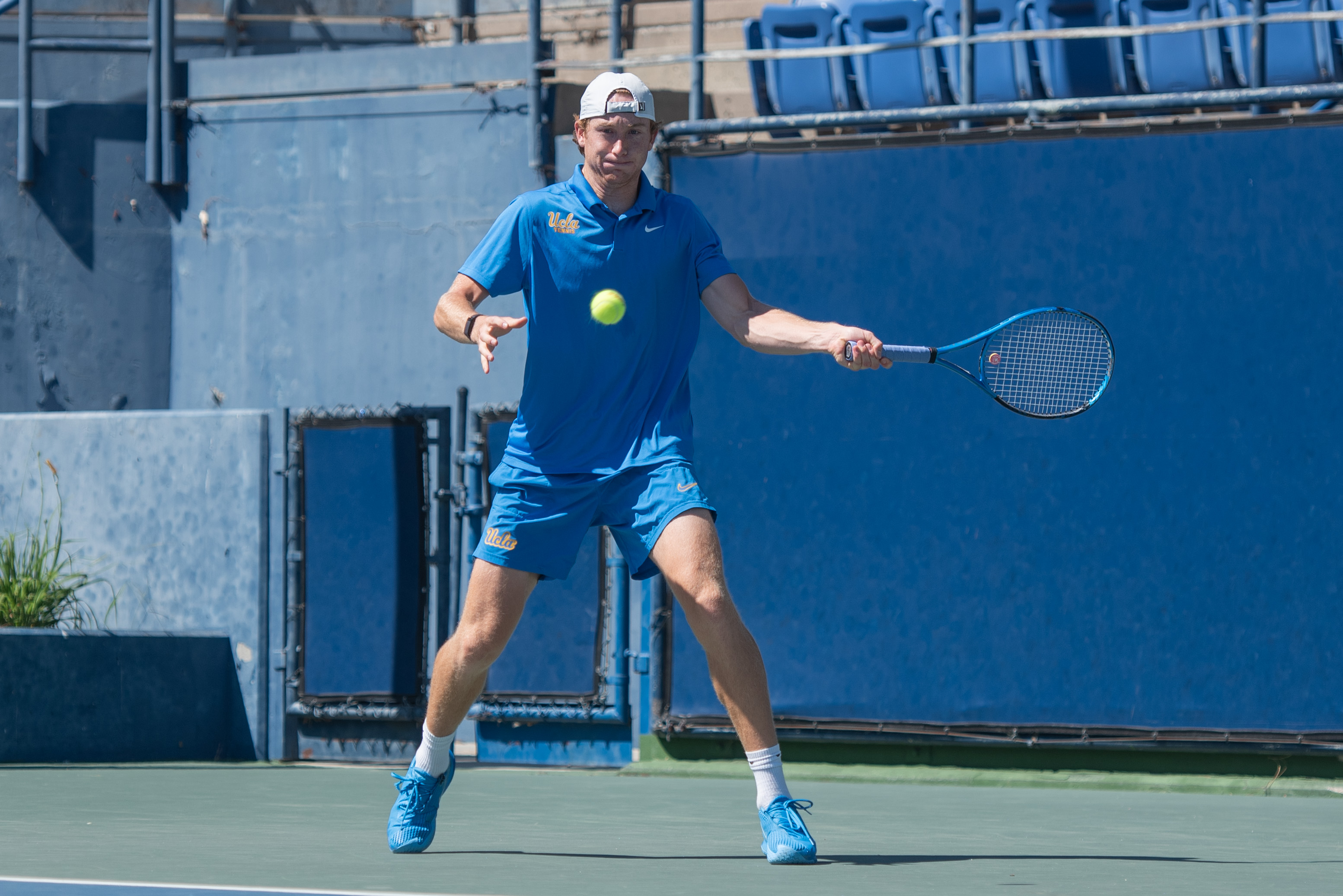 Junior Spencer Johnson completes a forehand swing. (Brianna Carlson/Daily Bruin staff)