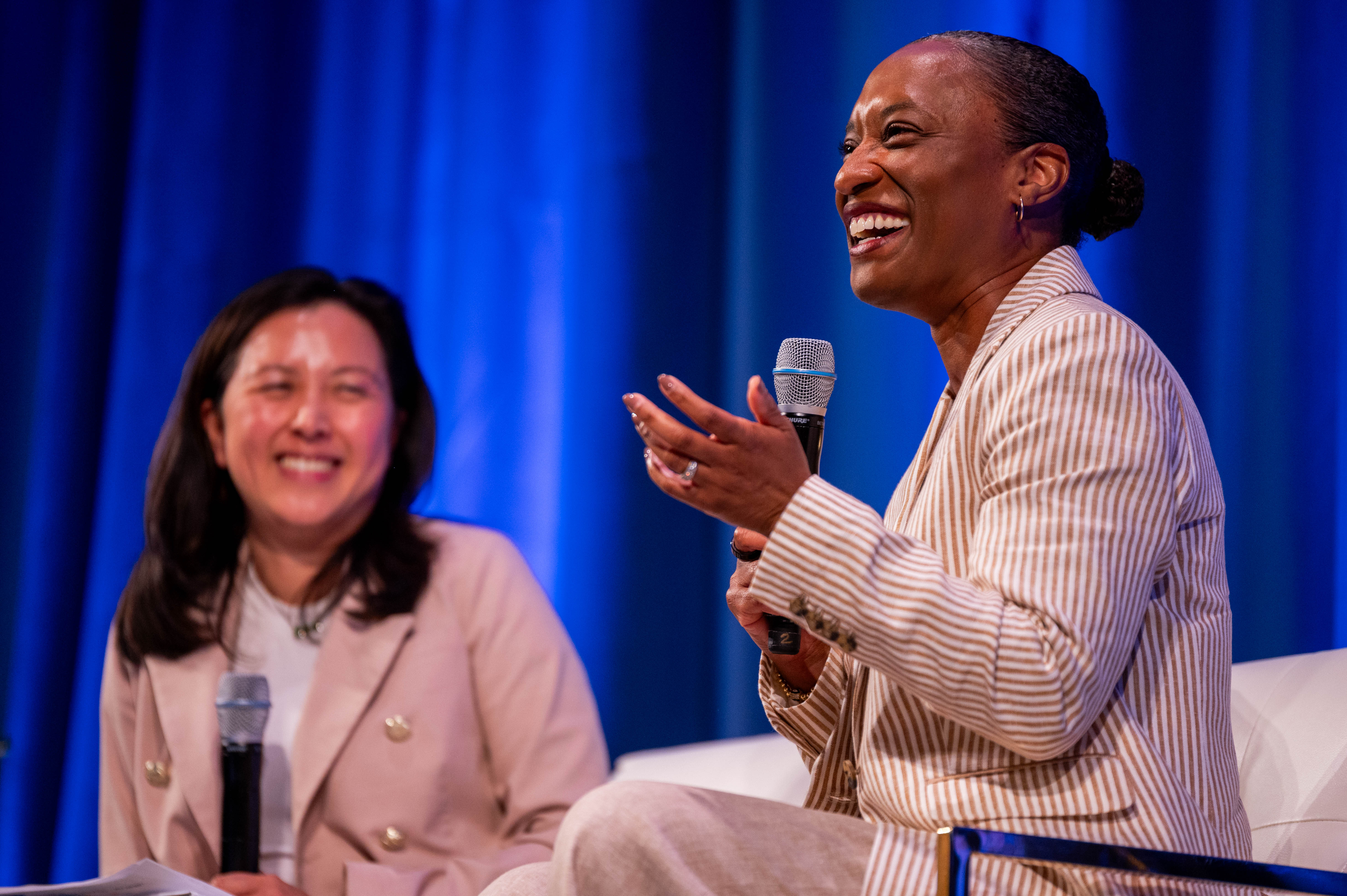 Former U.S. Senator Laphonza Butler and Alissa Ko, a UCLA alumnus and the vice president of external affairs for the insurance company Health Net, are pictured. Butler emphasized the importance of local government in enacting political change at the UCLA Luskin School of Public Affairs 2026 summit Wednesday. (Kai Dizon/Daily Bruin senior staff)