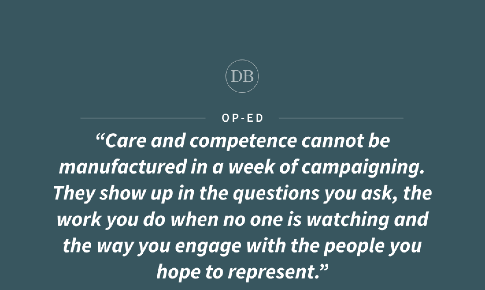Care and competence cannot be manufactured in a week of campaigning. They show up in the questions you ask, the work you do when no one is watching and the way you engage with the people you hope to represent.