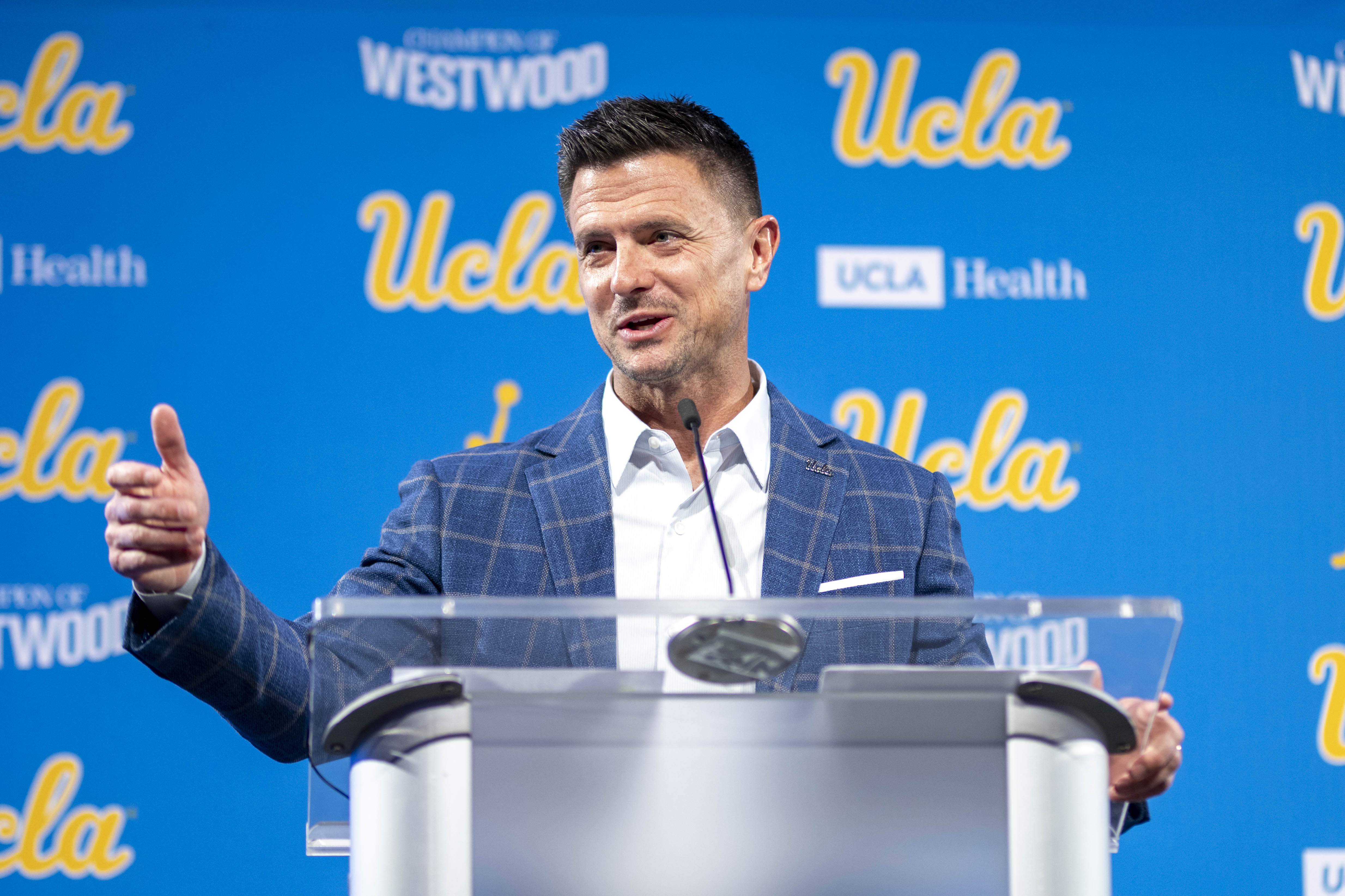 UCLA football head coach Bob Chesney gives his remarks at his introductory press conference. (Aidan Sun/Assistant Photo editor)