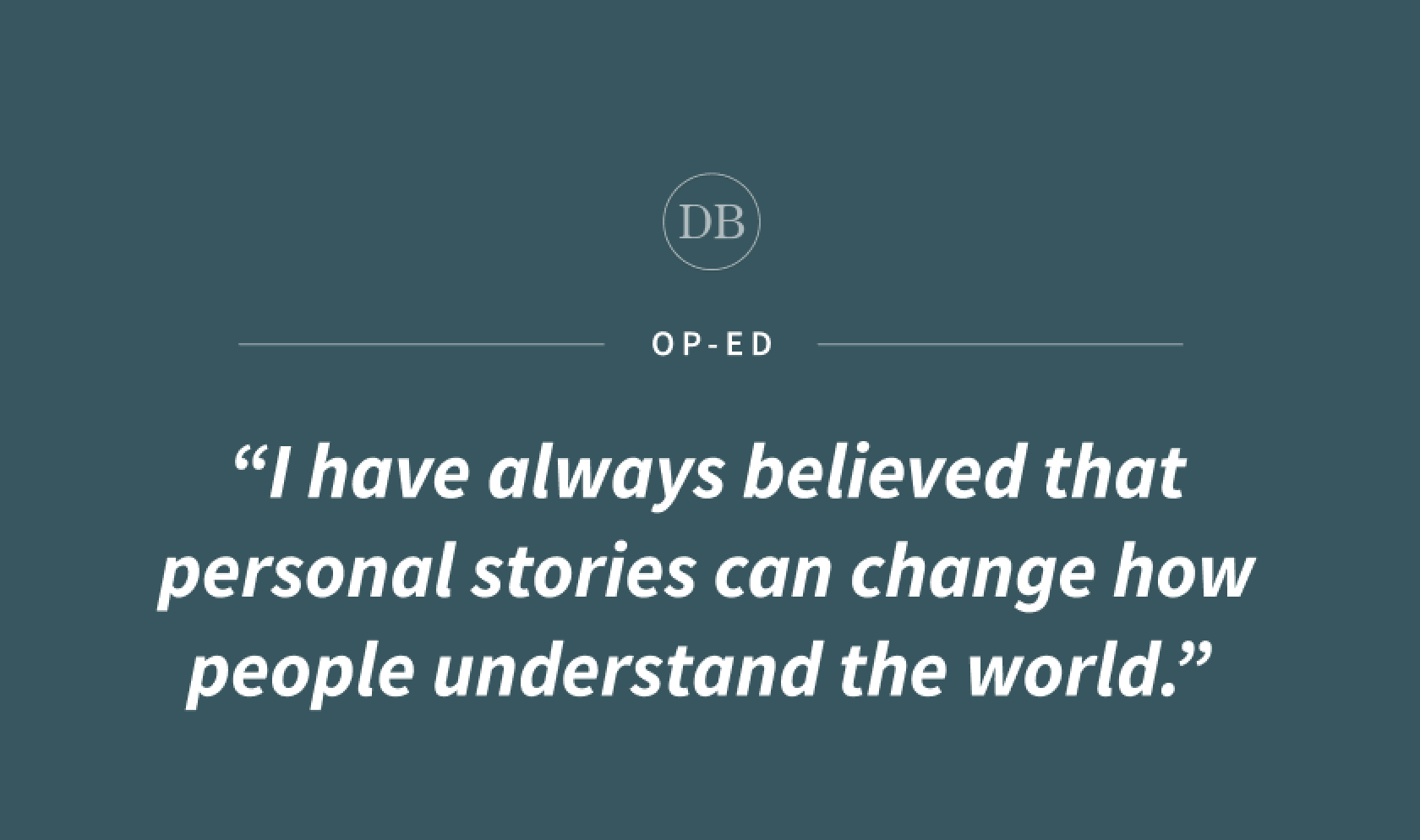 I have always believed that personal stories can change how people understand the world. A story fills in the parts that statistics are not able to.
