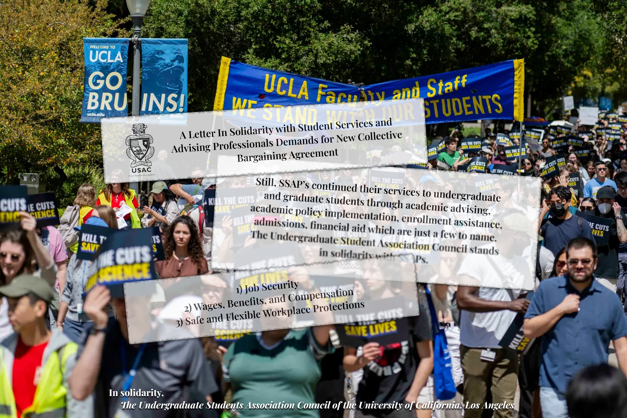 The Undergraduate Students Association Council expressed support for the student services and advising professionals unit of United Auto Workers Local 4811 in its contract negotiations with the UC.