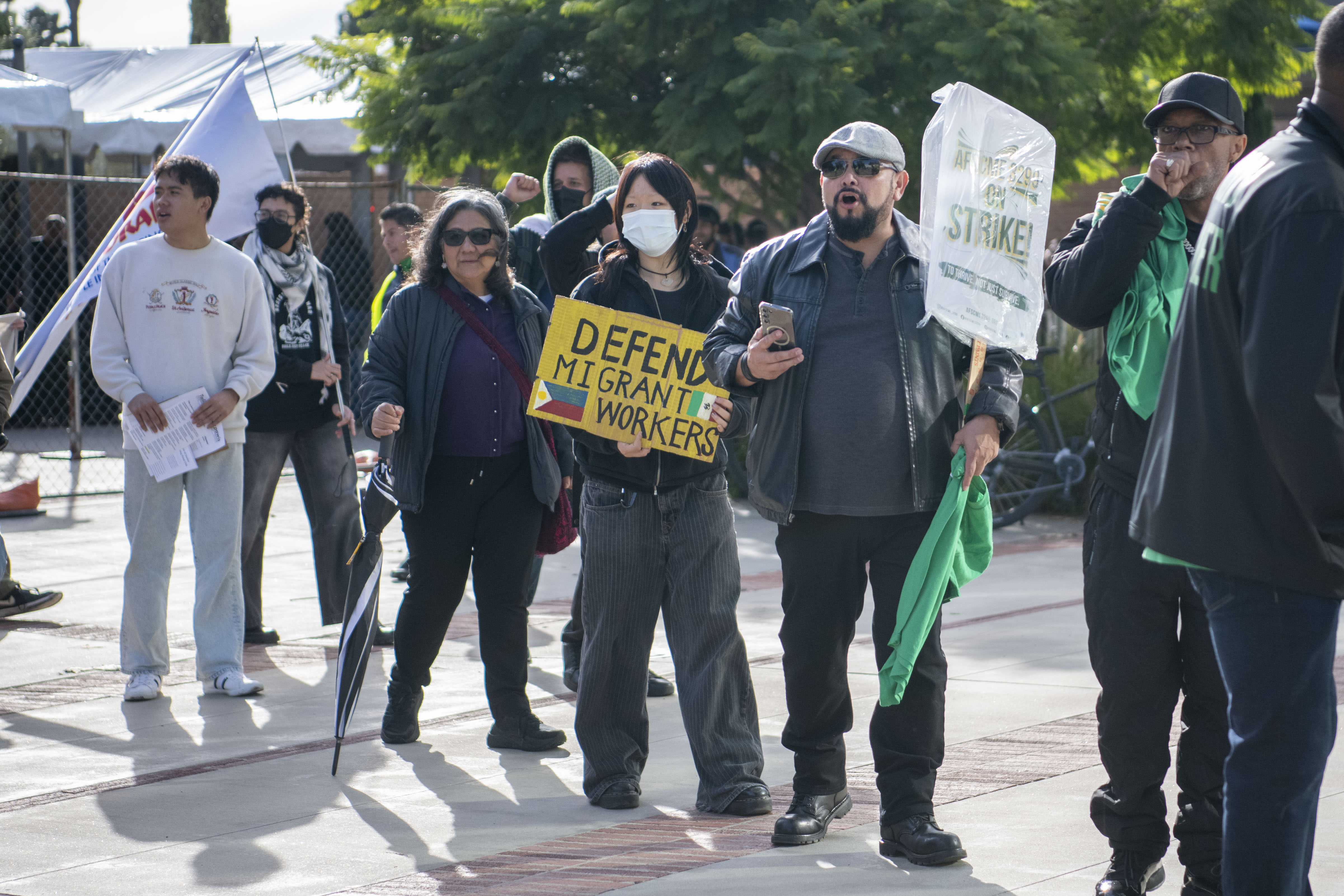 At 2:17 p.m., about 100 students, including those from Anakbayan and SLAP! at UCLA, joined AFSCME Local 3299 demonstrators to shout, “Who’s got the power? We’ve got the power. What kind of power? Union power.”