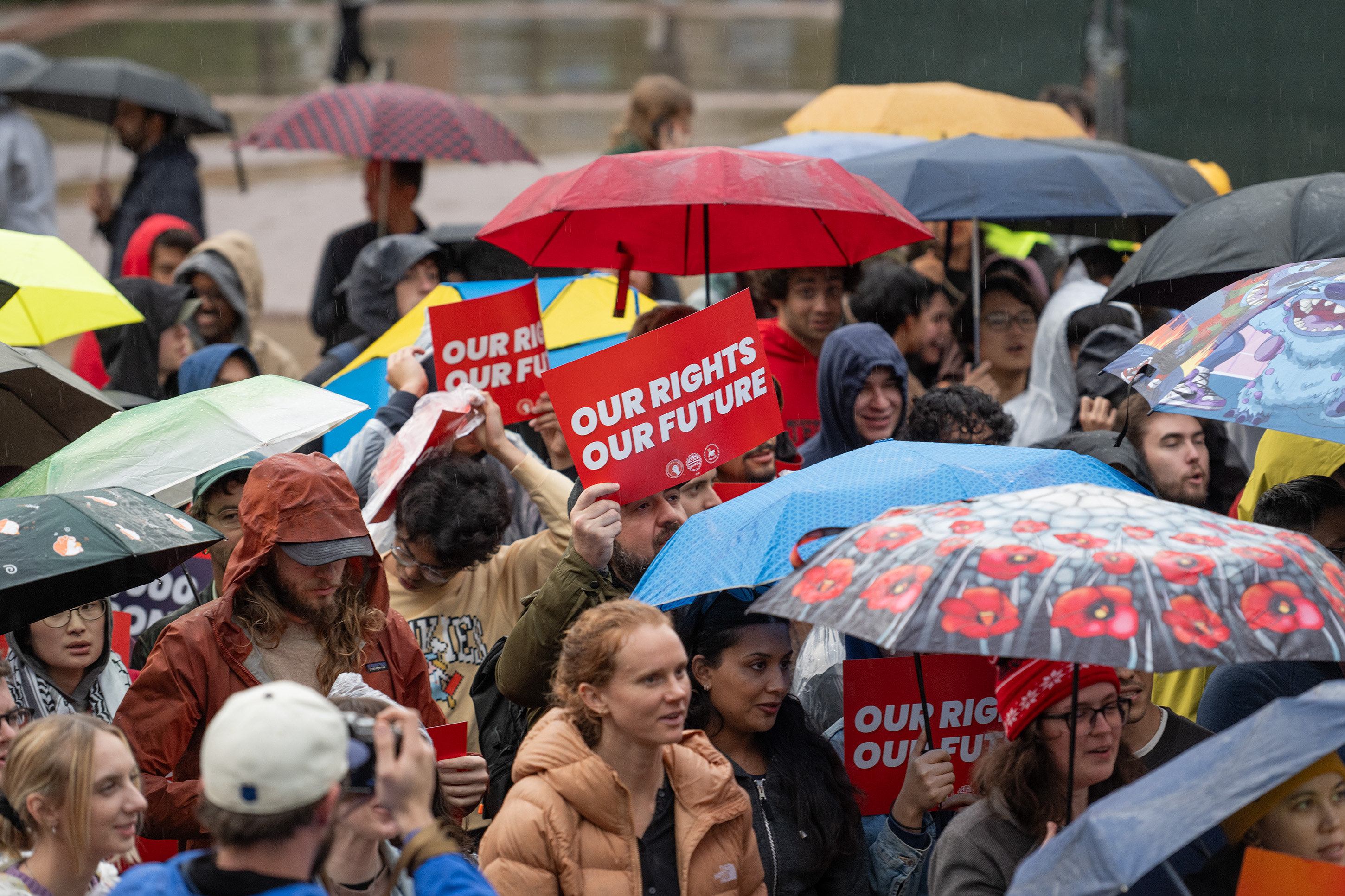 Units of United Auto Workers are pictured at a November rally. Members of UAW Local 4811 joined UCLA student groups condemning immigration enforcement violence and United States foreign intervention at a Saturday protest in downtown Los Angeles. (Leydi Cris Cobo Cordon/Daily Bruin senior staff)
